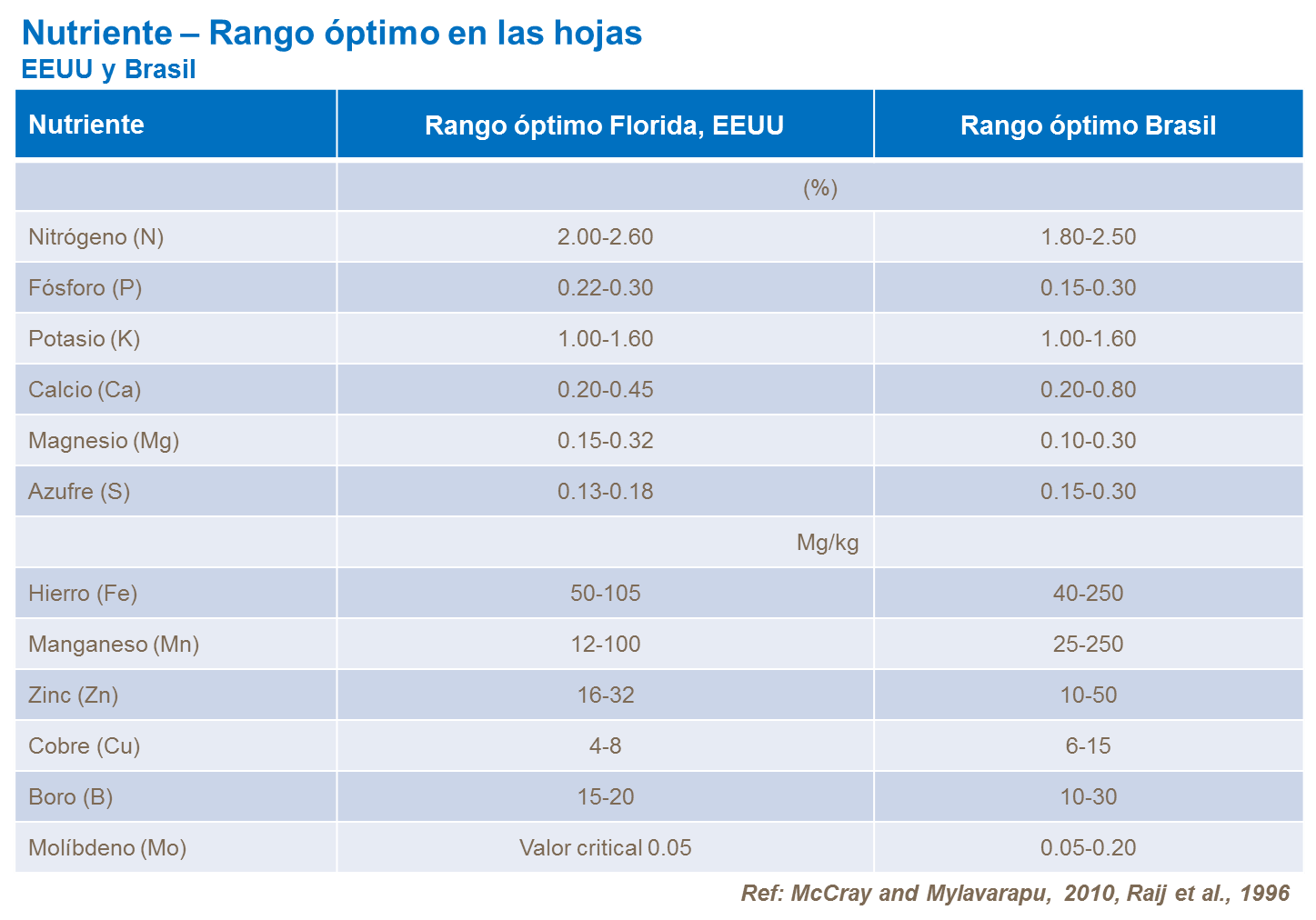 Hay diferencias significativas en la utilización de nutrientes de una variedad a otra, en particular con respecto a la absorción de N, y es importante tener en cuenta las diferencias locales.