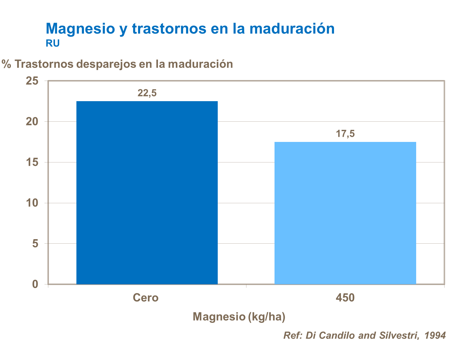 El magnesio es particularmente importante para asegurar la maduración uniforme de frutos bien formados.