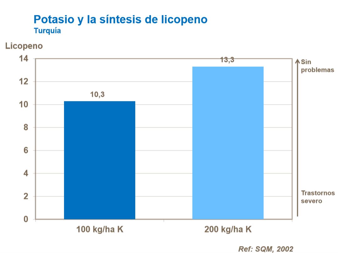 Un bajo nivel de potasio puede llevar a una pobre coloración y una síntesis reducida de licopeno.